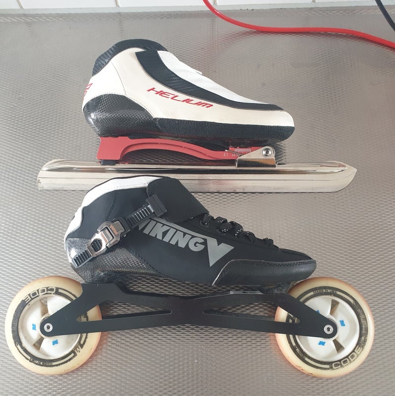 Met de nieuwste vederlichte skeelerschoen van Viking komt de volledige combinatie zeer dicht in de buurt van het gewicht van de moderne klapschaats!
